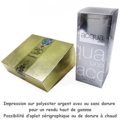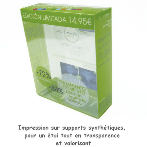 Étuis carton l'emballage en toute simplicité. Étuis en carton et en polyester. L’impression est faite en numérique, ou en offset. Dorure à chaud, dorure à froid, cartons couchés une face, deux faces, dos bois, pelliculage, vernis UV, offset. Étiquettes adhésives.